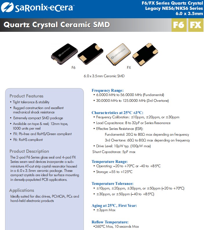 Diodes百利通亞陶晶振,F6兩腳貼片晶振,F61200046諧振器